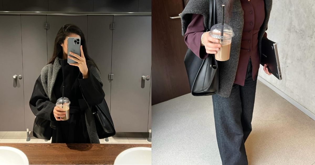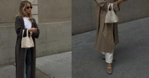 This ensemble is the epitome of minimalist chic — it’s clean, it’s polished. The light grey sweater gives off a soft, approachable vibe, while the dark jeans provide a sleek contrast. I’m particularly drawn to the simplicity of the cut and the fit; it looks comfortable yet refined.