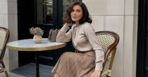 Champagne Satin Skirt with Beige Knitted Top